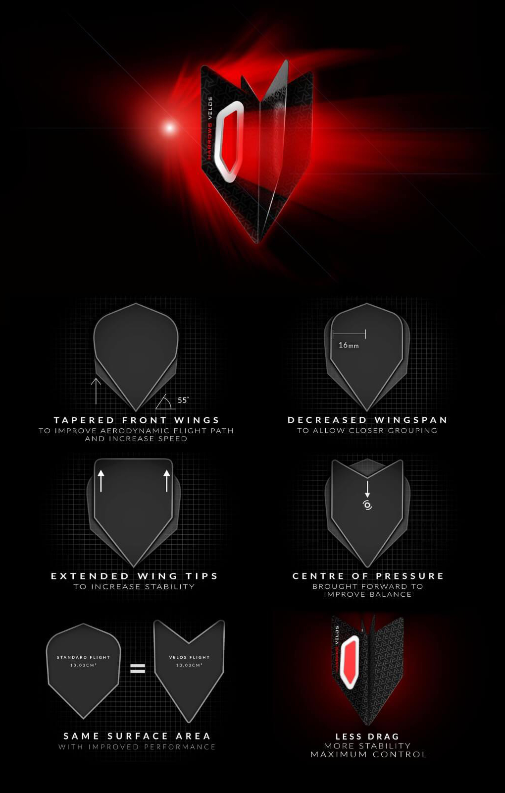 Nowy, unikalny kształt Velos charakteryzują: stożkowy przód skrzydeł, zmniejszona rozpiętość i wydłużone końcówki.