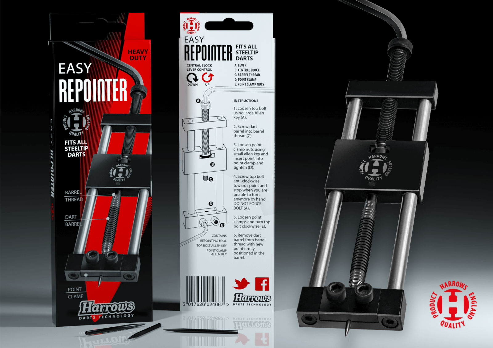 Zaawansowane technologicznie i proste w obsłudze narzędzie do wymiany stalowych grotów w rzutkach.